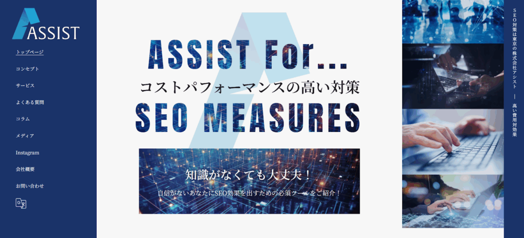 株式会社アシストは、東京を拠点にSEO対策を得意とするWebマーケティングサービスを提供する企業です。中小企業や個人事業主向けに、費用対効果の高いSEO施策を提案し、検索エンジンからの集客強化を支援しています。