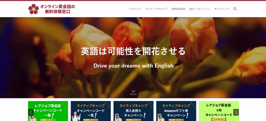 ネイティブキャンプのキャンペーンやレアジョブのキャンペーン等のオンライン英会話スクールの割引情報と評判・口コミ情報をオンライン英会話の無料体験窓口は紹介しています。