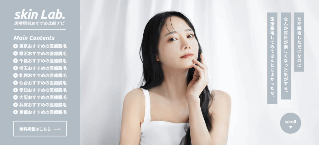 医療脱毛おすすめ比較ナビ「skin Lab.」は、全国の医療脱毛クリニックをエリア別・テーマ別に紹介する比較情報サイトです。東京・大阪・名古屋・福岡などの主要都市をはじめ、全国各地の優良クリニックをランキング形式で紹介しています。