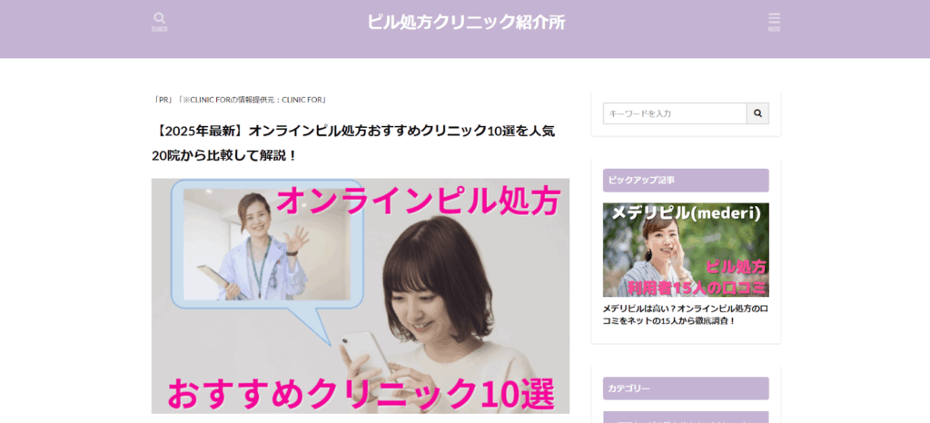 選定基準や費用相場、利用手順、目的別の選び方も詳しく解説されており、初めてオンラインでピルを利用する方にも分かりやすい内容です。口コミや体験談も掲載されており、比較検討の参考になります。
